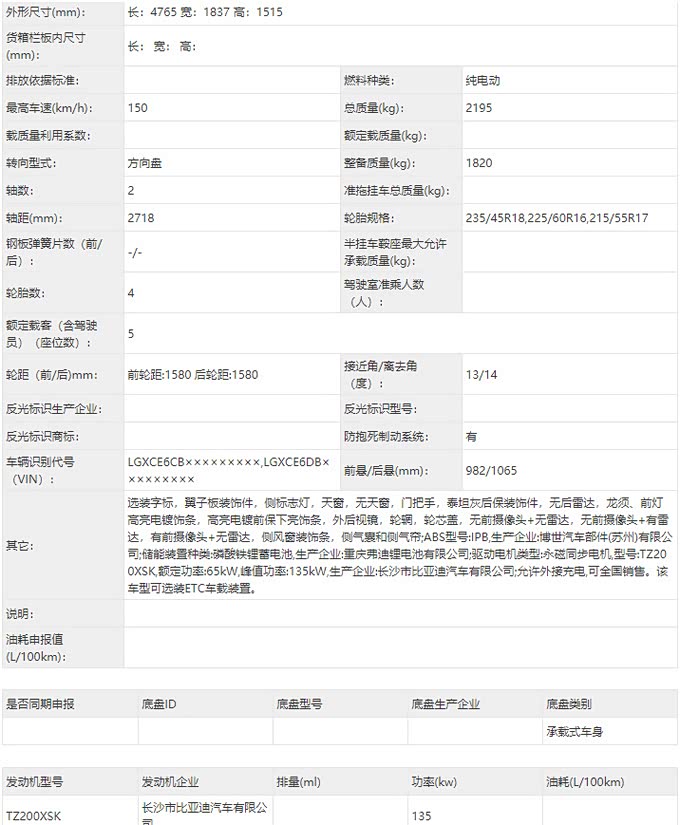 尺寸方面,纯电秦PLUS长宽高分别为4765×1837×1515mm,轴距为2718mm,除车身增高以外,其他数据与DM-i版车型一致。动力续航方面,新车采用永磁同步电机与磷酸铁锂刀片电池的组合,最大功率135kW,最大扭矩280Nm,NEDC最大续航里程为600km。