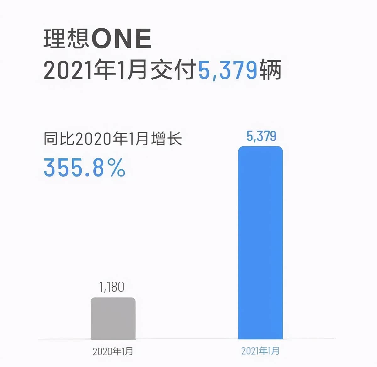 数据显示,理想汽车一月份交付量5379辆,虽说和去年同期相比,增长了355.8%,但是和2020年12月相比(交付6126辆),却环比下降了12.2%,并未延续单月交付量创新高的良好势头。