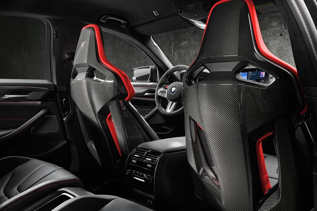 而且M部门还将两张头枕绣有纽北图案的M竞技型碳纤桶椅塞进车内。为了照顾后排乘客的乘坐“稳定性”,后排同样设置了两张带镂空设计的桶椅,在纽北赛道上的“Ring Taxi”是时候更新装备了。