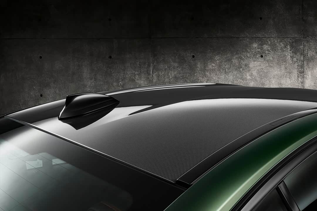 轻量化可是宝马M5 CS的亮点之一,从前分离器、发动机盖、后视镜盖,大尺寸车尾扰流板及扩散器,包括车顶覆盖件均标配了碳纤维增强复合材料(CFRP)!