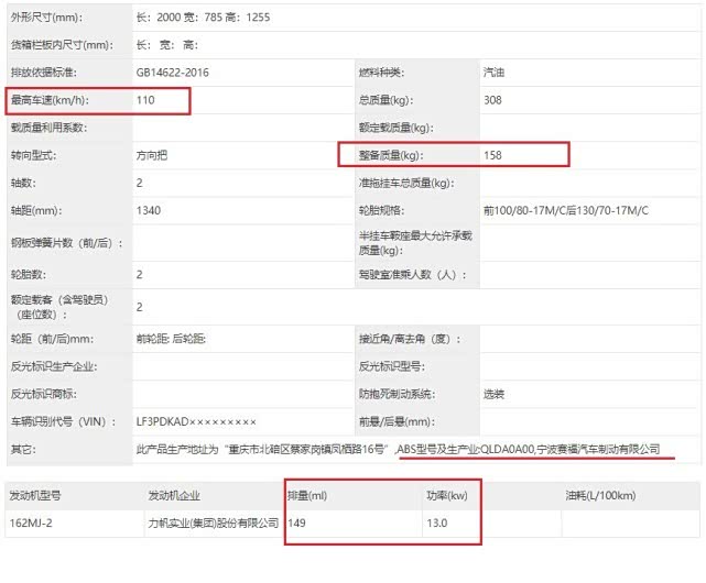 发动机方面还是我们非常熟悉的,力帆150单缸水冷发动机,最大功率13kw,在这个级别当中表现靠前,该车配备ASB防抱死系统,整备重量158kg。