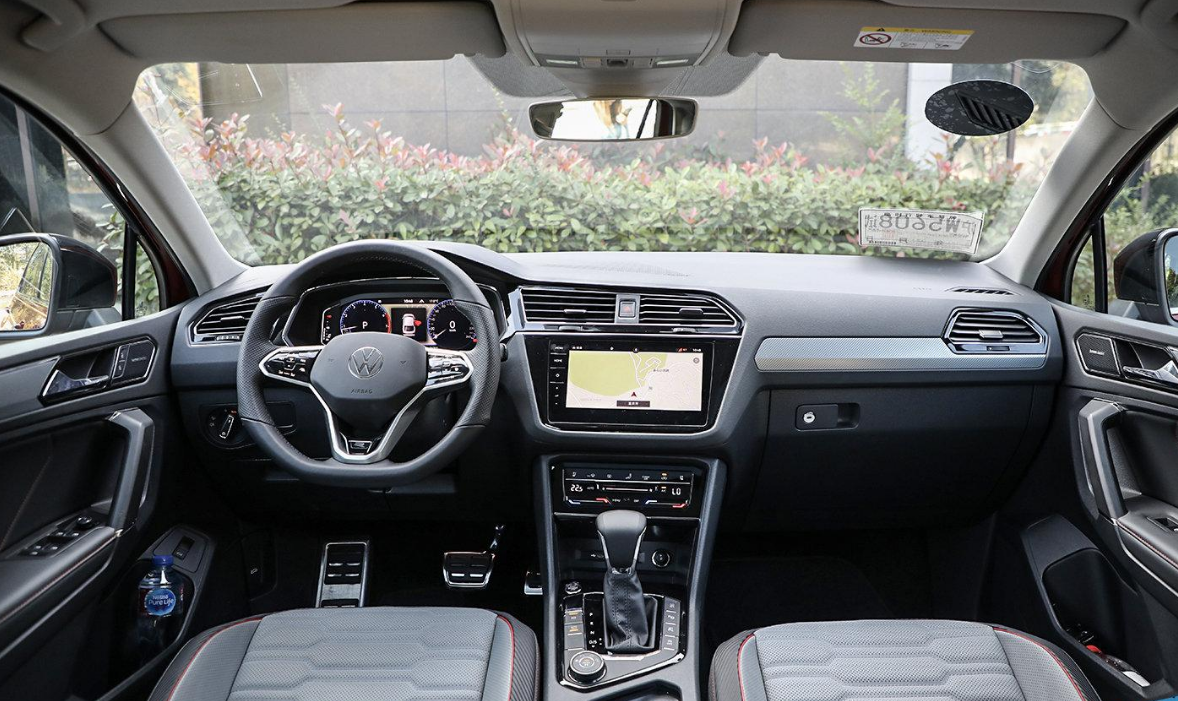我们再来看里面,其实大众途观X的内饰和其他大众车型相比也有一些区别。它的方向盘经过了全新设计,方向盘按键是有震动反馈的,就像手机打字一样。用料更加用心,真皮柔软度和手感都强于几个热销车型。而标配的10.3英寸的液晶仪表盘与9.2英寸的中控屏幕,提升了整车内饰的档次,而且科技感有提升,唯独比较遗憾的就是没有采用独立的中控屏,仍然把它镶在了控制台里面,希望后面的改进型中能有新的改变。不过途观X采用了支持智能语音交互以及手势操作的智能化体系。这样在驾驶的过程中,驾驶员和乘客可通过语音指令调整空调以及音乐播放导航等各功能,还是非常人性化的。它采用的真皮座椅也是非常高档,柔软贴合度好,座椅的包裹性很强,不亚于四五十万的豪华车的品质。