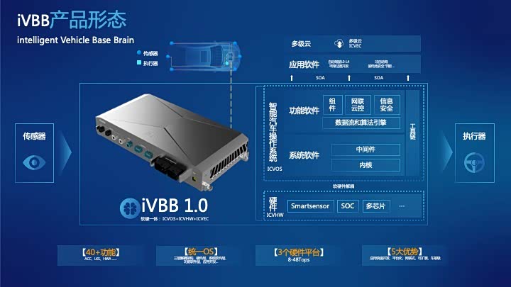 “智能汽车基础脑”,含智能网联汽车操作系统(ICVOS)、智能汽车域控制器(ICVHW)以及车路云协同基础软件(ICVEC),具有应用快速开发、平台化、网联式、可扩展、车规级等特点。