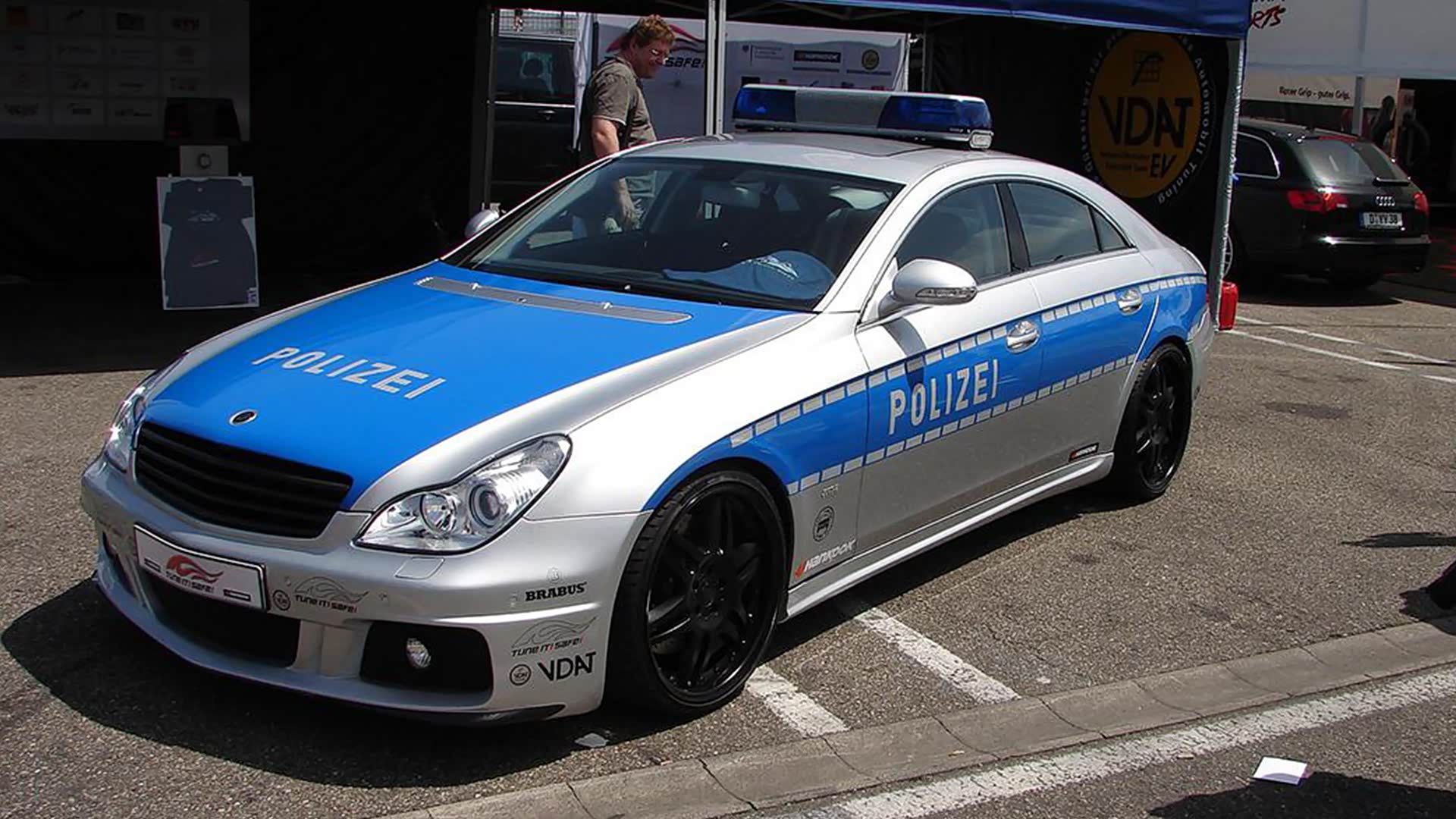 这台CLS是德国联邦交通部与著名改装厂Brabus巴博斯联手打造的车型。为了不辱老牌改装厂的名号,巴博斯在CLS发动机舱内塞下了一台V12双涡轮增压发动机,最大输出功率超过了740马力,在那时可谓神挡杀神,佛挡杀佛,不过该车后来并未编入警队。