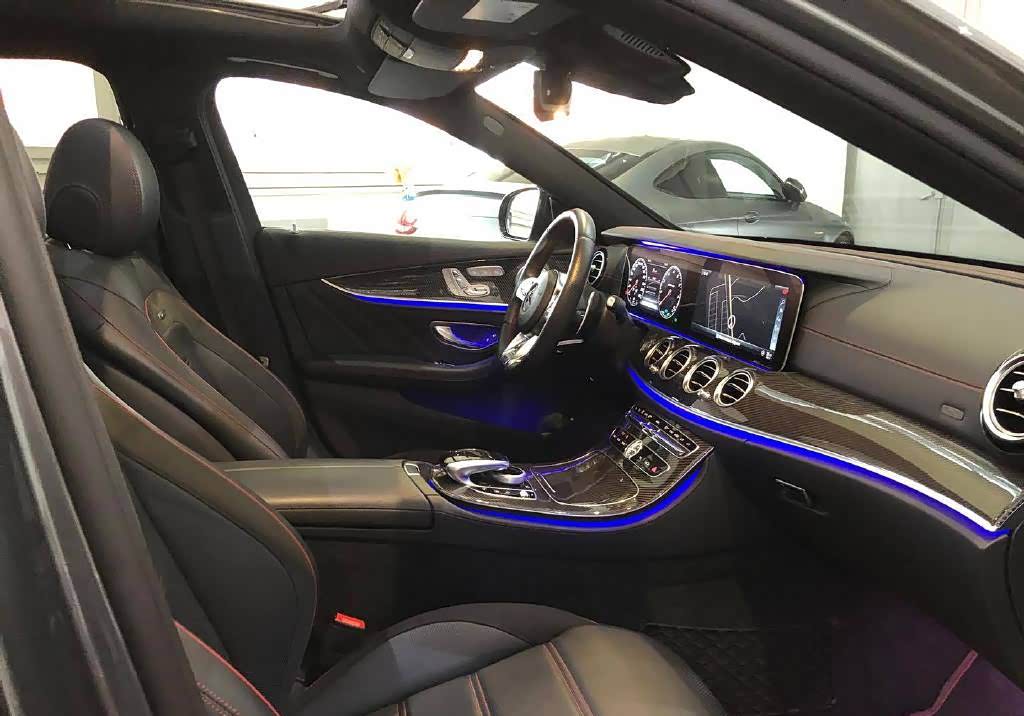奔驰作为汽车开创者,它的AMG系列一直独占鳌头,这台奔驰AMG E53搭配了灰色外观,运动感十足,内饰风格很奔驰,氛围灯必不可少,使用了很多碳纤维的装饰条来体现运动感。 不过和它的对手奥迪S7相比,外观我还是喜欢奥迪的。你喜欢这款AMG E53吗?