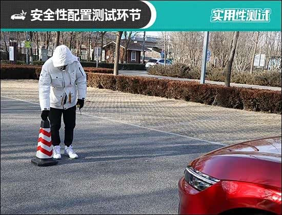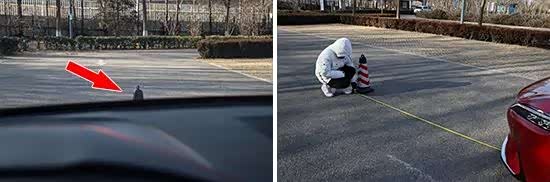 在测试前方视野阶段,我们采用高70cm的桩桶作为参照物,随后调整车距,直至在主驾驶位可以看到桩桶上沿。经过测试,桩桶与车头最终测得的数据为247cm,在测试过的同级别车型中处于中游水平。