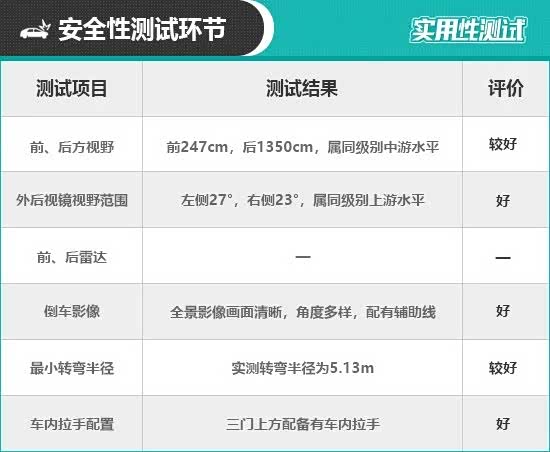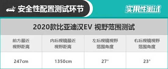 在车辆前、后方视野测试中,车内所有座椅均已调整至最低状态,所测出的数据与驾驶者正常使用时均有一些偏差,仅供参考。