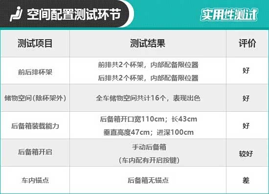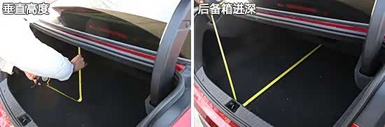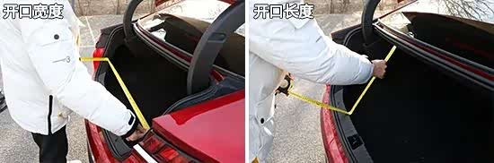 对于后备箱日常所需的基本数值,我们也进行了实测,开口的最大宽度为110cm;开口长度为43cm;后备箱地台与内部车顶的垂直高度为47cm;后备箱进深为100cm。