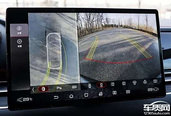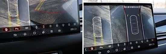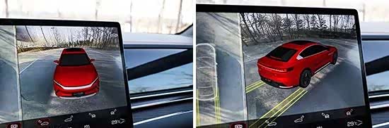 比亚迪汉EV配备了360度3D全景影像系统,画面清晰,并且支持多种角度可选,包括正前、两侧以及正后等。此外,画面还可以模拟当前车辆的位置,这而样的“上帝视角”也有助于驾驶员更加方便的判断相对位置。影像内的辅助线能够根据方向盘转动实时变化位置,使用感受非常出色。