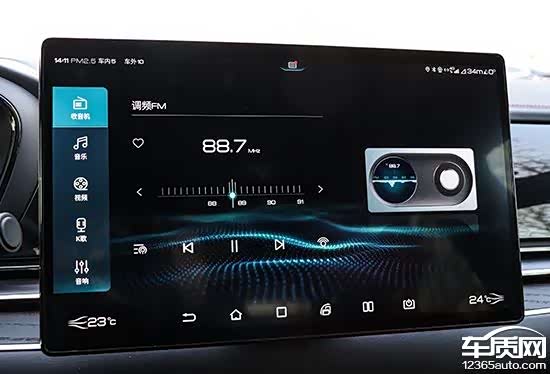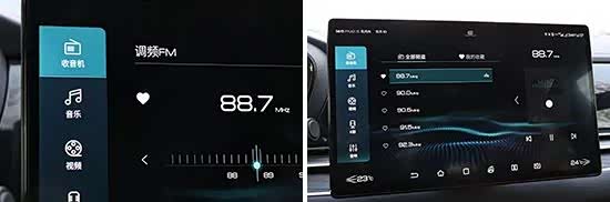 对于日常使用最多的收音机功能我们也进行了测试,直接点击主菜单中的“收音机”选项进入收音机功能主界面。界面设计十分简洁,左侧为工具栏,点按电台左侧的“桃心”就能收藏当前电台。左下方是菜单栏,点开后能够看到电台的目录表以及收藏电台的信息,选择非常方面。值得一提的是,比亚迪汉搭载的立体式波纹扬声器还采用了Dirac高保真声学科技,在声音的呈现效果方面表现相当出色。