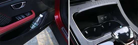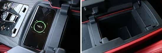 前排储物空间较为丰富,车门拉手为封底设计,配合门板储物槽,储物能力令人满意。中控台下方是一个带盖板的储物槽,内部可以放置手机,并且电源接口以及水杯架也均被安置在此处。中央扶手箱内部容积中规中矩,前侧还配有一个手机槽,带有无线充电功能。