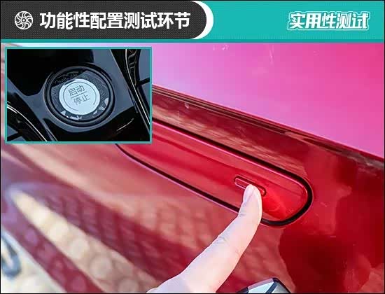 测试车前排两车门均配备无钥匙进入功能,锁车时只需要按动拉手后侧的按键即可。解锁时先按压按键,随后隐藏式车门拉手就会自动弹出,使用十分便利。测试过程中,解锁和落锁过程十分顺畅,并没有出现失灵或是卡顿的情况。