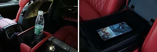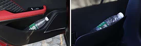 后排门板储物槽设计与前排相似,容积适中,拿取物品非常方便。前排座椅后侧带有“夹子”,可以放置水瓶或文件等物品,但感觉还是没有网兜或是置物袋实用。后排扶手前侧配有两个杯架,不过由于阻尼设置过强,因此整个翻转开启的过程很慢,需要“手动加速”。杯架后侧为触控屏,再往后是一个尺寸较大的储物槽,容积较大且带有盖板,实用性很强。