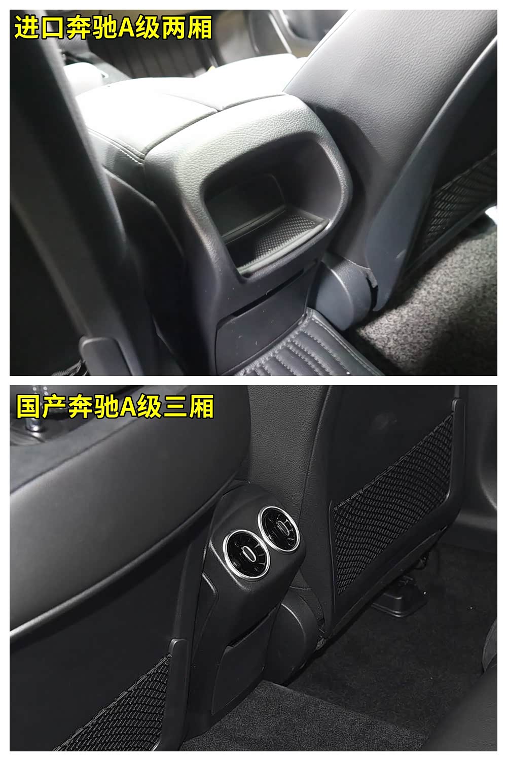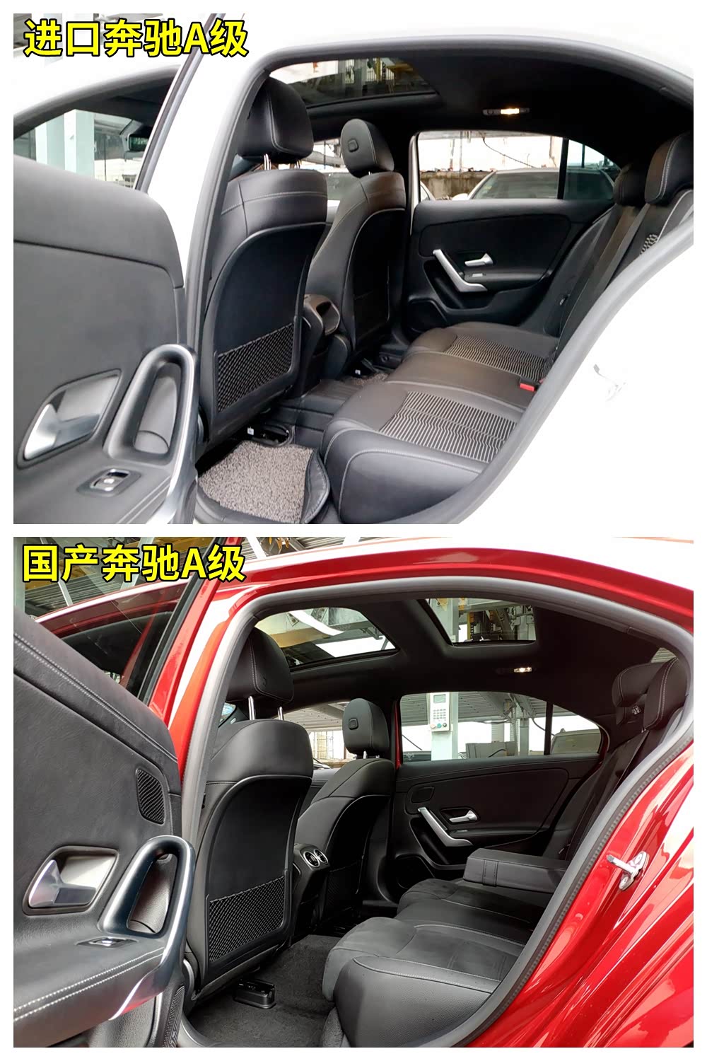 国产三厢A级全系标配全景天窗,奔驰的中国设计师太清楚全景天窗对于中国人的意义了。可以一年开不了几次,但是一定要有。有天窗的,特别是全景天窗的那就是高端车。而进口两厢奔驰A级只有一个面积大点的电动天窗,后排乘客头顶是没有天窗的。并且最低配的进口A180连天窗都没有,车顶是光秃秃的。