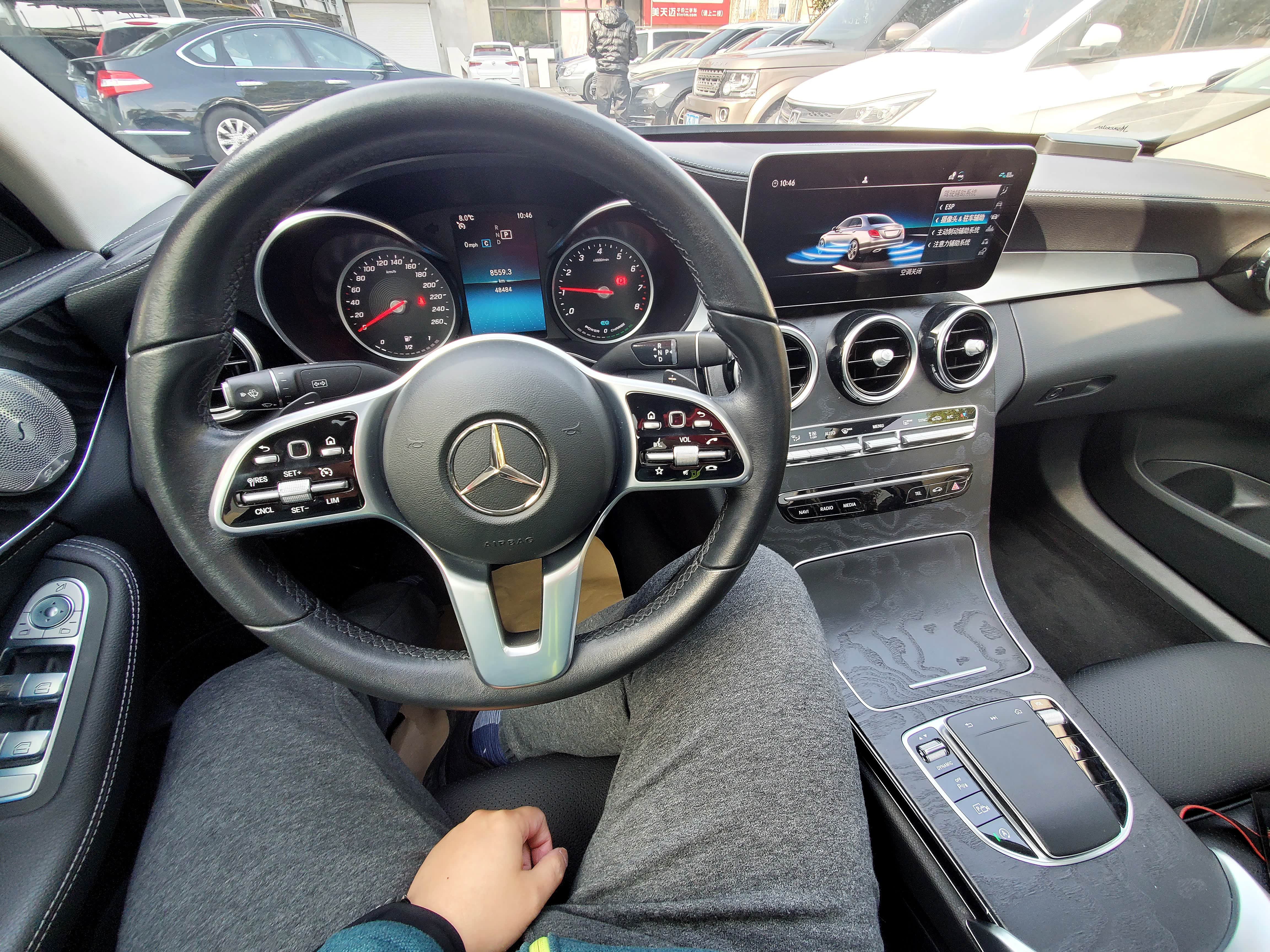 相比之下,前几年热销的奔驰C级内饰就不如A级这么漂亮了:不是双连屏、空调出风口不会随着氛围灯变色,氛围灯颜色的种类和显示范围也比A级少。
