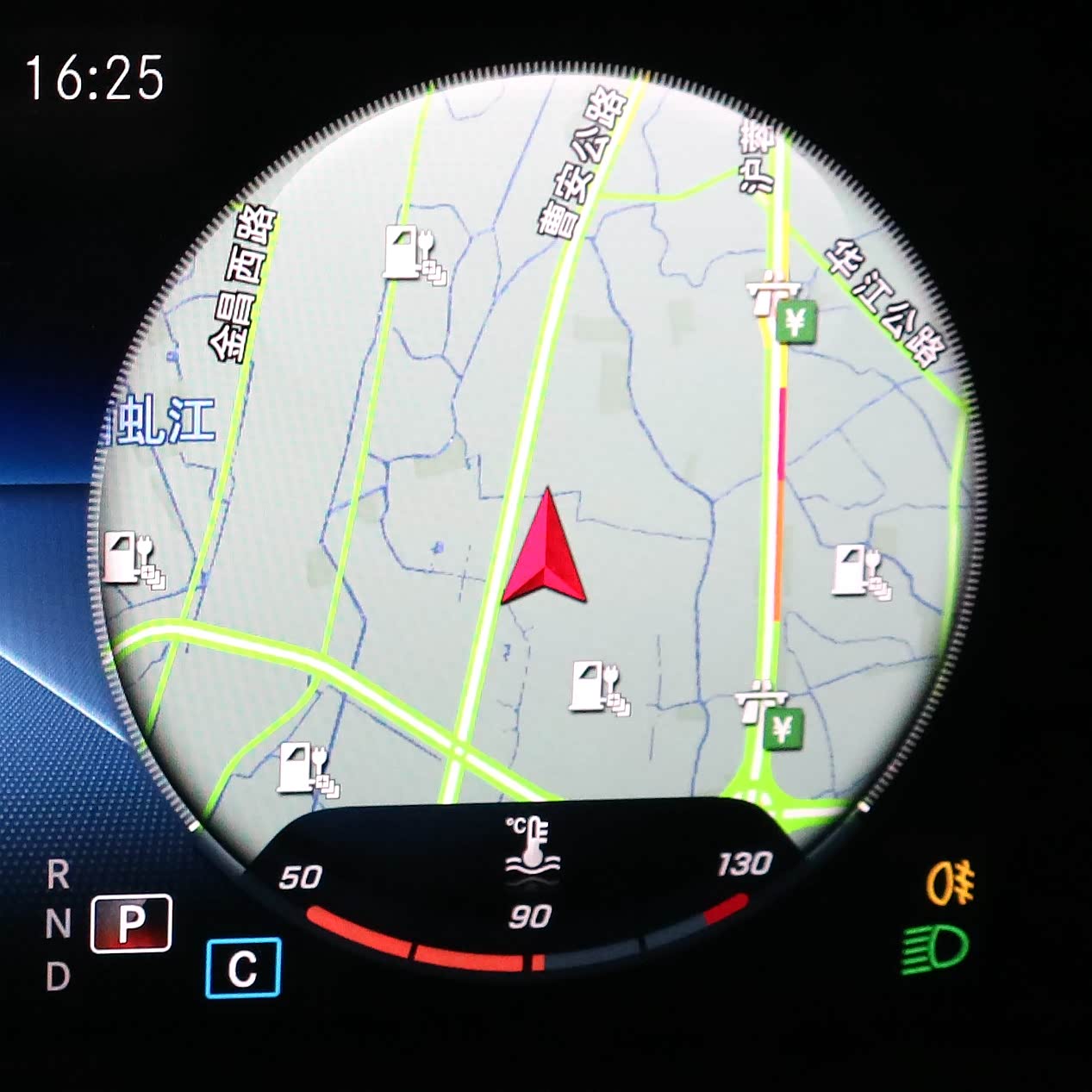 而右侧的仪表盘导航图片放大后能清楚的看到地图中的充电桩,虽然这个车是纯汽油车。通过这2个图片放大的细节可以看出屏幕显示的精度和细腻度非常的好。