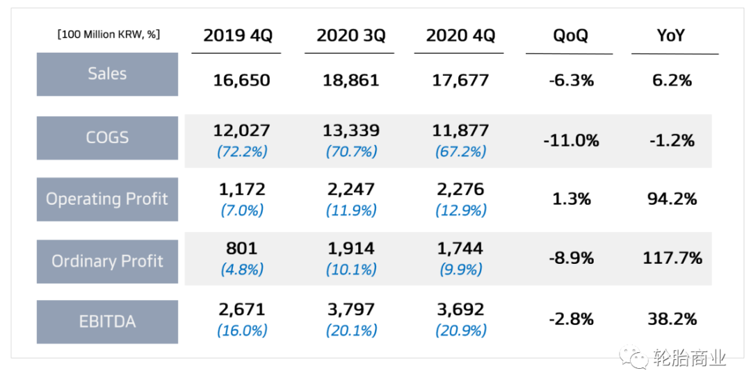 近日,韩国轮胎制造商韩泰轮胎正式公布2020年第四季度以及全年财务报告。尽管受到全球疫情的恶劣影响,韩泰轮胎的全球营业利润仍同比增长15.5%,18英寸或更高的高英寸轮胎的销量同比增长3%,占总销量的35%左右。