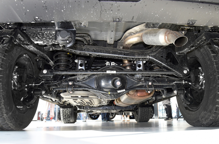 网上还有言论,说坦克300的轮眉正中心,和轮毂正中心不在一条直线上,这个说法就有些牵强,因为轮眉本就是不规则的设计,所以很难去衡量它的中心点在哪里,事实上,它的轮毂中心点在轮框的中心点,所以不存在问题。除了车身结构之外,打开坦克300的引擎盖,发动机舱内部的整体布局更倾向于SUV的设计,比如水箱型号、ECU/进气口/变速箱的位置都偏向于SUV的设计,变速箱支架不够粗壮,并不适合硬派越野车的要求,这会限制坦克非承载式车身、分时四驱、差速锁等越野配置的性能发挥,降低它的极限通过性,此外,坦克300采用的电子单风扇,而硬派越野车一般都采用的硅油单风扇。