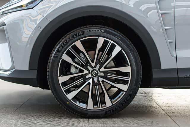 侧面融入了隐藏式门把手,降低风阻系数的同时也增加了一些时尚感,配备了19英寸立体切割造型的五辐轮圈,表面还进行了熏黑处理。