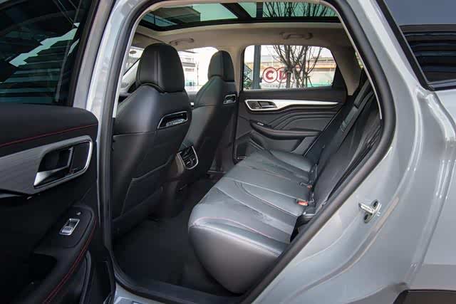 后排座椅材质和前排保持一致,具有不错的乘坐质感,并且车内并没有采用目前流畅的全景天幕,而是采用了可开始的大尺寸全景天窗。后排配备独立空调出风口以及2个USB充电接口。