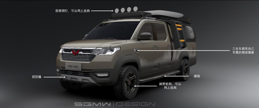 下面这款改装车采用了彰显野性的墨绿涂装、车尾货箱还加装了顶棚和车顶帐篷,这款改装后的 五菱征途就是专为野外露营打造的,它也有一个非常霸气的名字“越境征途”。