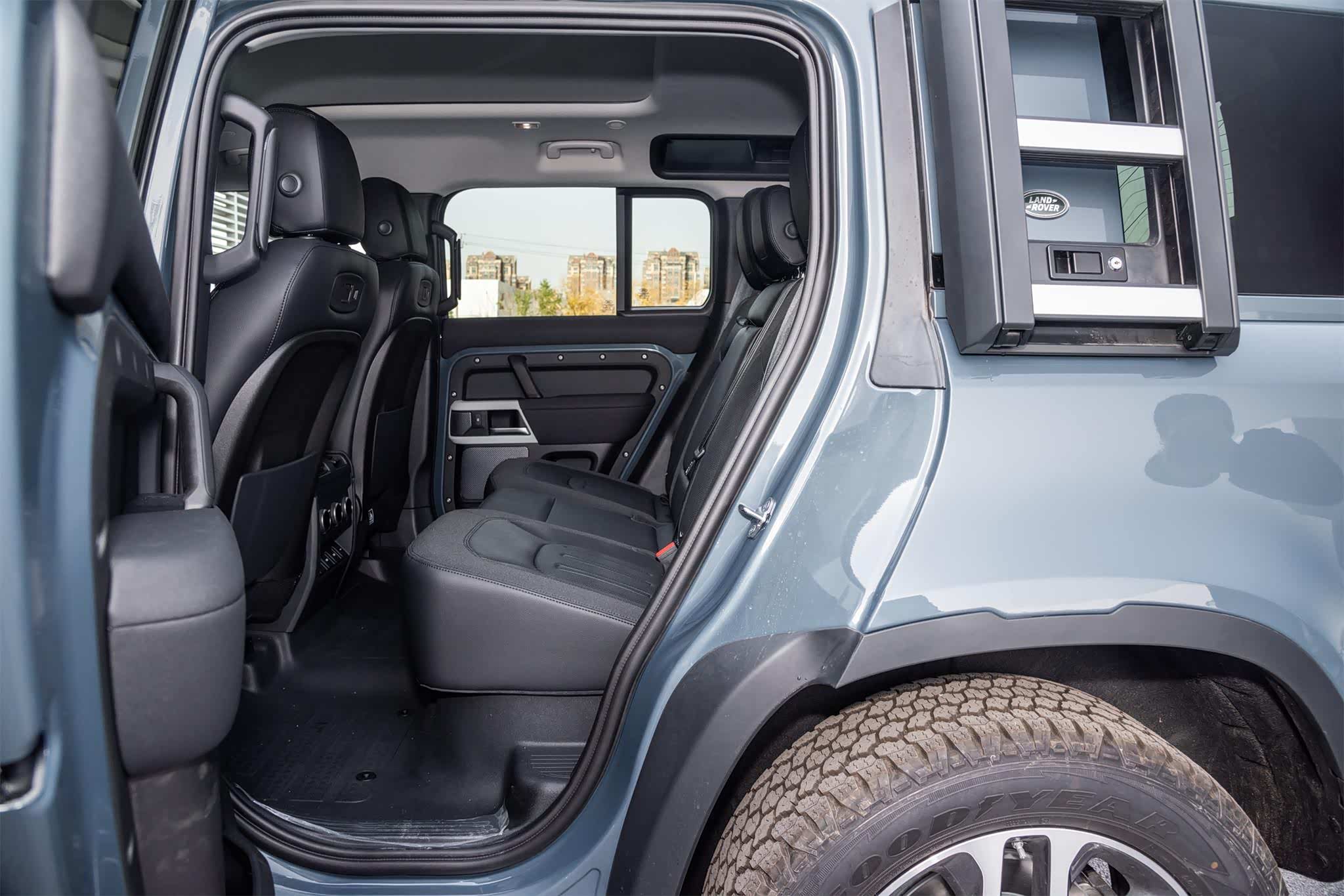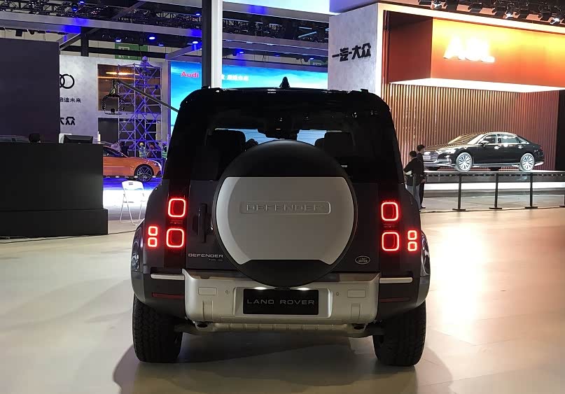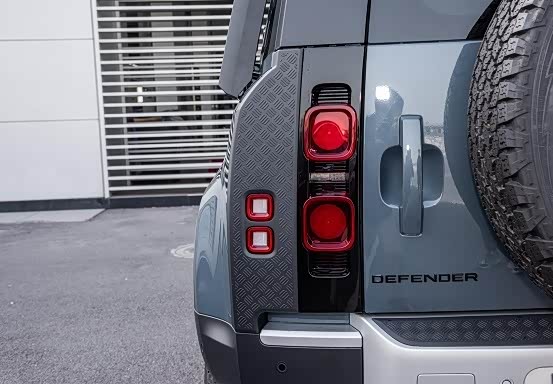 尾部设计比较有特色,采用了经典的侧开式车门,车门上则设置了全尺寸备胎,这种设计目前在市场上越来越少了,路虎卫士则坚持了下来。它的车尾上窄下宽,看上去比较沉稳,比较符合路虎的一贯气质。