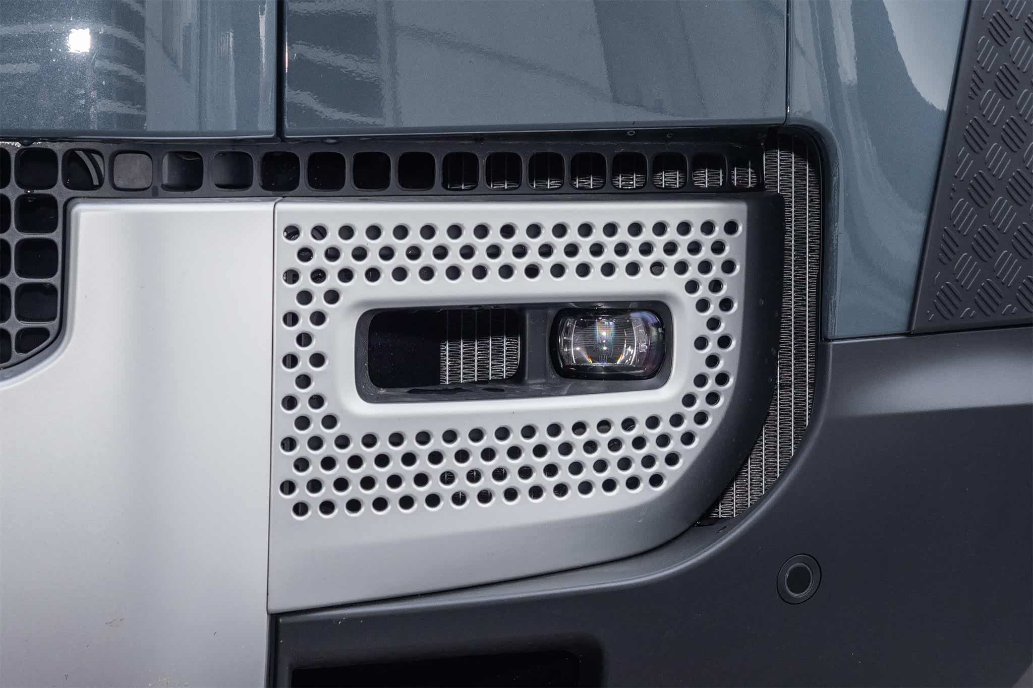 大灯的边框横平竖直,放在其它车型上,人们可能会觉得违和,但在路虎卫士上,别显得很霸气。此外它的功能也比较丰富,除了最低配车型之外,全系车型均采用矩阵式大灯,并且拥有自适应远近光、自动头灯、大灯高度可调等功能。