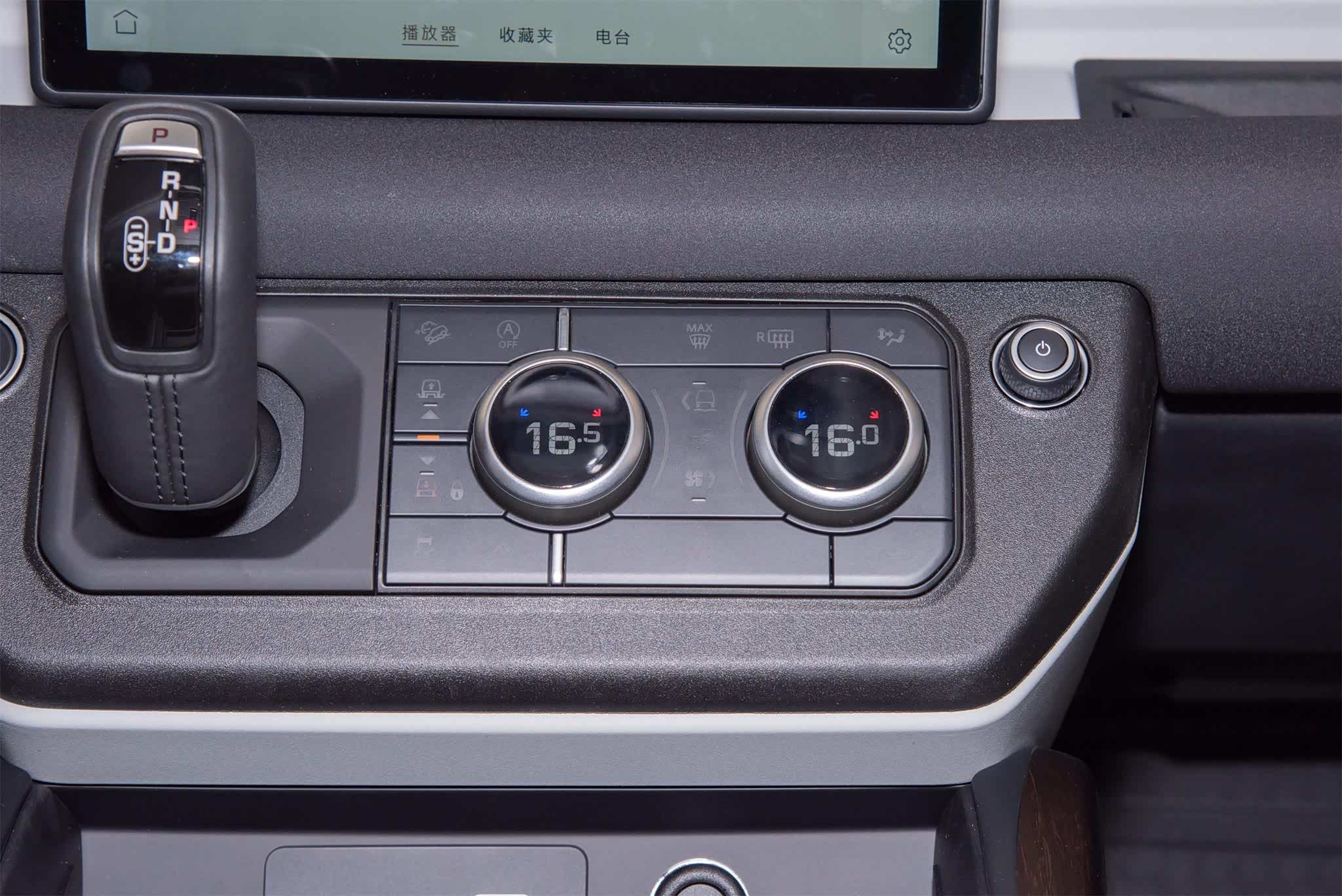 真皮材质包裹的挡把被放在了中控台上,离驾驶者的距离更近,右侧则是一个由大量实体按键和旋钮组成的空调控制面板。与中控屏的问题一样,挡把的尺寸也比较小,看上去不够大气。