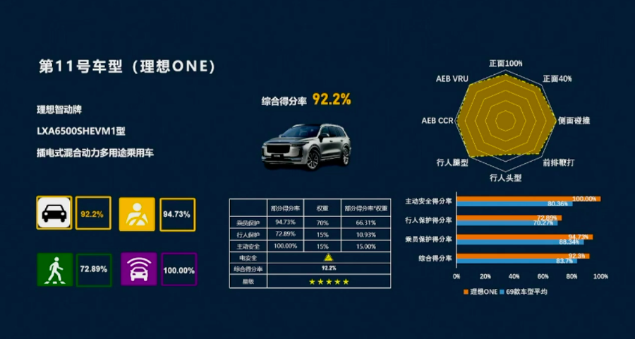 理想ONE最终综合评价得分率达到了92.2%,这个成绩无论是自主还是合资品牌中,都可以说是很不错的。