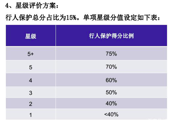 主动安全方面:主动安全测试是对于配置了 ESC 系统的试验车辆,通过审核车辆生产企业提供的具备资质的第三方检测机构出的关于此车型满足相关要求的性能测试报告,判定车辆上的 ESC 系统是否具备所要求的性能。分为自动紧急制动系统(AEB)、车辆追尾自动紧急制动系统(AEB CCR)、行人自动紧急制动系统(AEB VRU_Ped)、ESC四个方面。