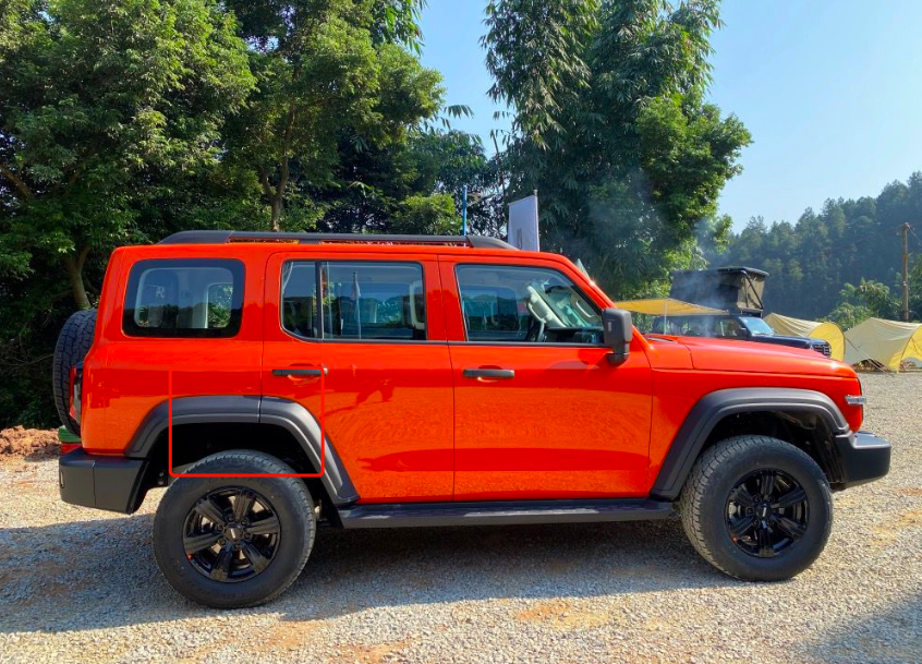 坦克300的后轮眉前半段嵌在后车门上,而不是采用一体设计安装在车身上。这样做可以让开后门上车时的空间更大,另一点是如果轮眉上有泥土,在上下车时,也不容易蹭在衣物上,这两点可以归结在便利性细节方面。