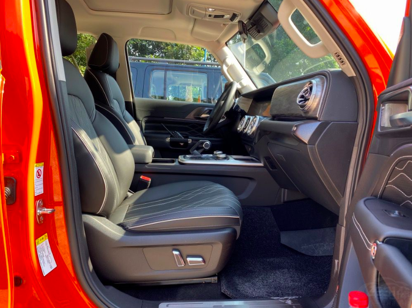首先一点,坐入车内我最喜欢的就是坦克300的座椅。在此之前,这种硬派越野车的座椅给我印象就是“小板凳”——又硬又直。但坦克300上的座椅完全不是那样,主驾驶座椅,腿部支撑足够,并且座垫足够软,腰部支撑也足,不非得只是豁沙子玩越野,舒服的乘坐感受也能照顾到位。