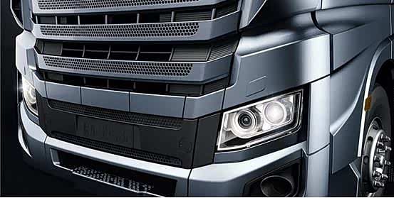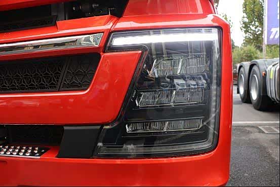 陕汽德龙X6000牵引车主灯组和底部雾灯没有集成为一体但有日间行车灯巧妙串联,独有的设计语言让日行灯点亮时具有非常高的辨识度。该车不仅采用LED光源,还具备弯道辅助照明系统,可在夜间转向时照亮侧面盲区,提高行车安全性。