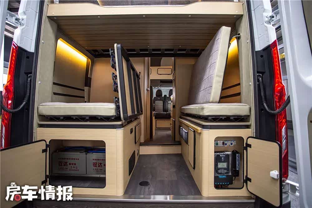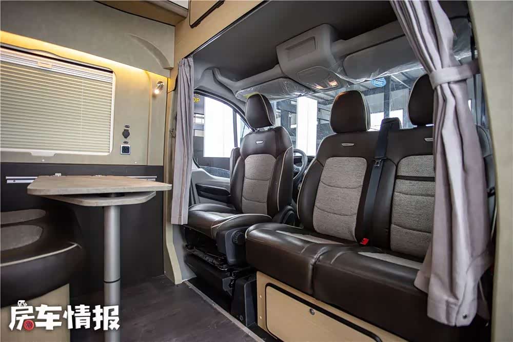 底盘各项参数与配置相比于老款车型来说驾驶控制安全稳定,舒适性提高,便利性也进步明显。这款车的设计功力一如既往地出色,依然由众锐工设操刀打造,房车专用轻质板、美国MT房车专用软装布料,进口防水耐磨PVC地板革等细节使得车的质量受得好评。