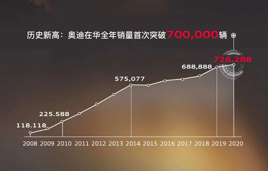 在2020年大势不好的环境下,奥迪向中国大陆市场共计交付了726,288辆奥迪车,这也是奥迪进入中国市场30多年来销量首次突破70万辆。在不断转好的经济环境和不断新车的推出,奥迪在中国的持续增长似乎未来可期。安世豪先生公布了2023年,奥迪在华的年销售目标为100万辆。在这个听似惊人的数字背后,是奥迪强大的战略部署。