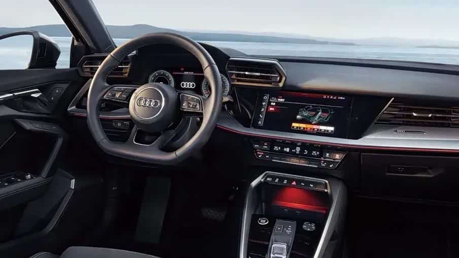 新一代奥迪A3的内饰设计相比上一代车型有着大刀阔斧的变化,整体更有科技座舱的氛围。在细节设计上,矩形空调出风口、12.3英寸的全液晶仪表盘、10.1英寸的中控液晶屏、精致的挡把等给奥迪A3的内饰增添了科技气息,而皮质材料和金属面板的则为内饰营造出不错的豪华质感。再加上30色氛围灯的加持,坐在奥迪A3车内,扑面而来的就是浓厚的科技氛围。如果要描述一个画面,相比上海外滩,笔者认为驾驶着奥迪A3穿梭在颇具赛博朋克风格的夜晚的重庆,会与奥迪A3的内饰氛围更呼应。