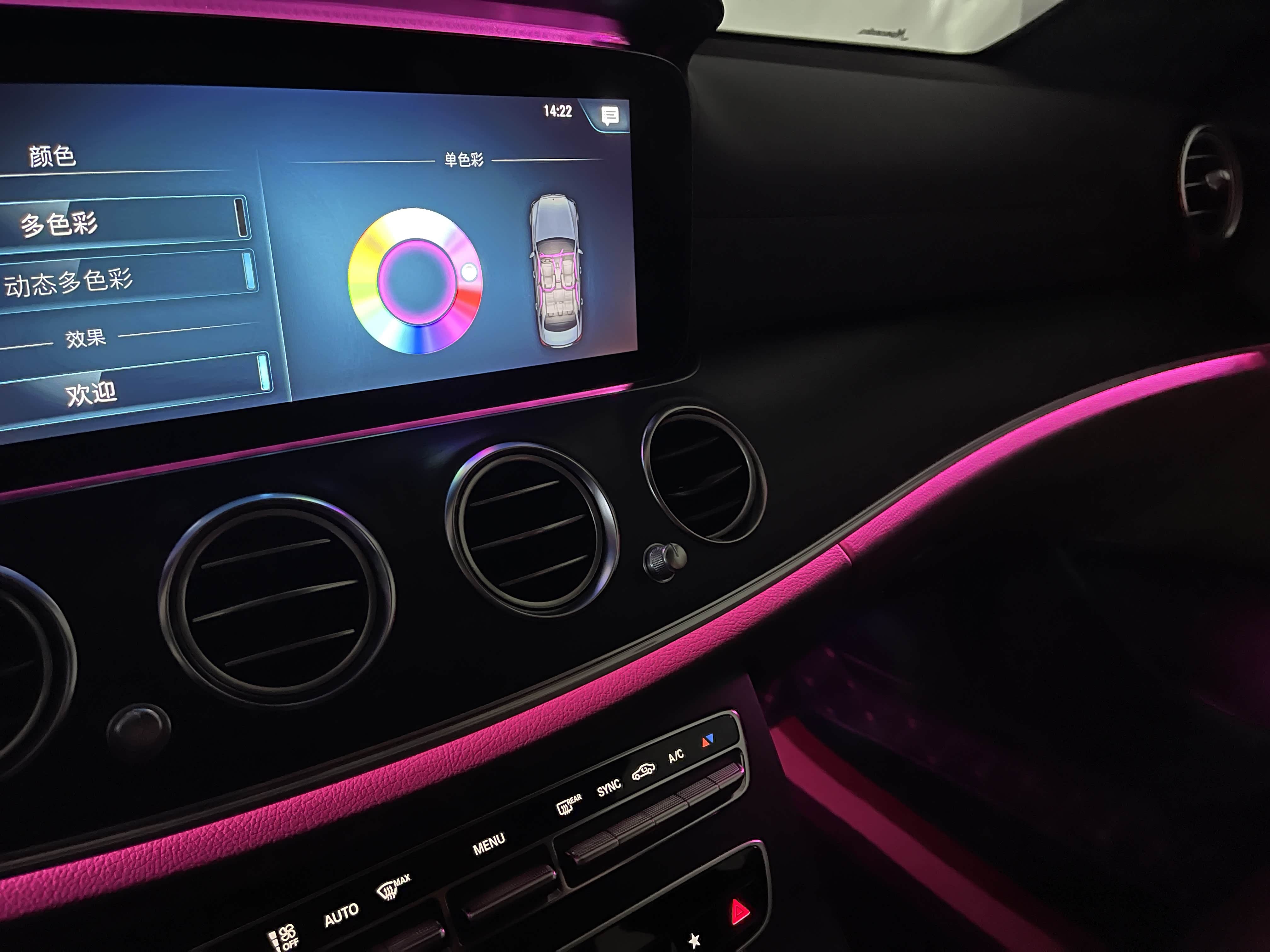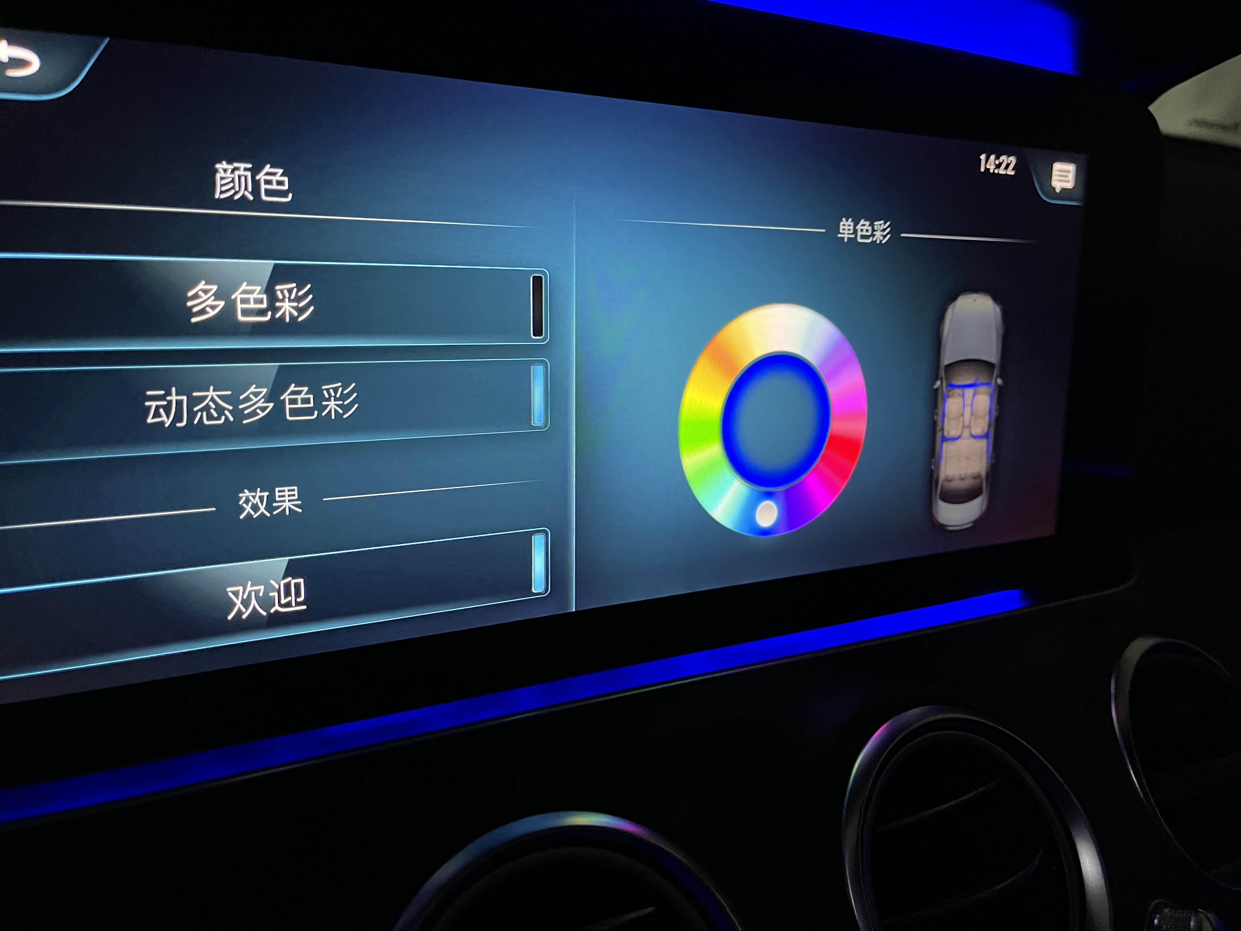如果你对于原厂的预设颜色不是很满意,完全可以自己创造专属的氛围灯效果。奔驰在自定义单彩色氛围灯的菜单上似乎传递了一个信息,任何颜色都能实现。事实上,你的确能自己调出真粉、真绿等非常个性化的颜色。这里面的颜色,你喜欢哪一个呢?
