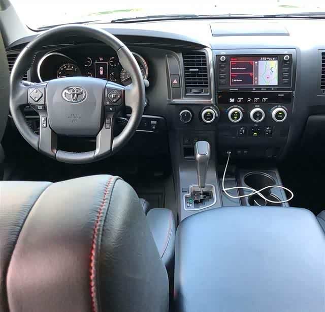 内部的红杉,依旧“还是你大爷”,跟之前的布局基本没有变化,还是丰田那LOW风,可能丰田就是觉得,这才是越野的标配。要说格局一般也就算了,可是用料也是一般,除了头枕上面有TRD Pro的字样之外,和普通版本完全没有区别。