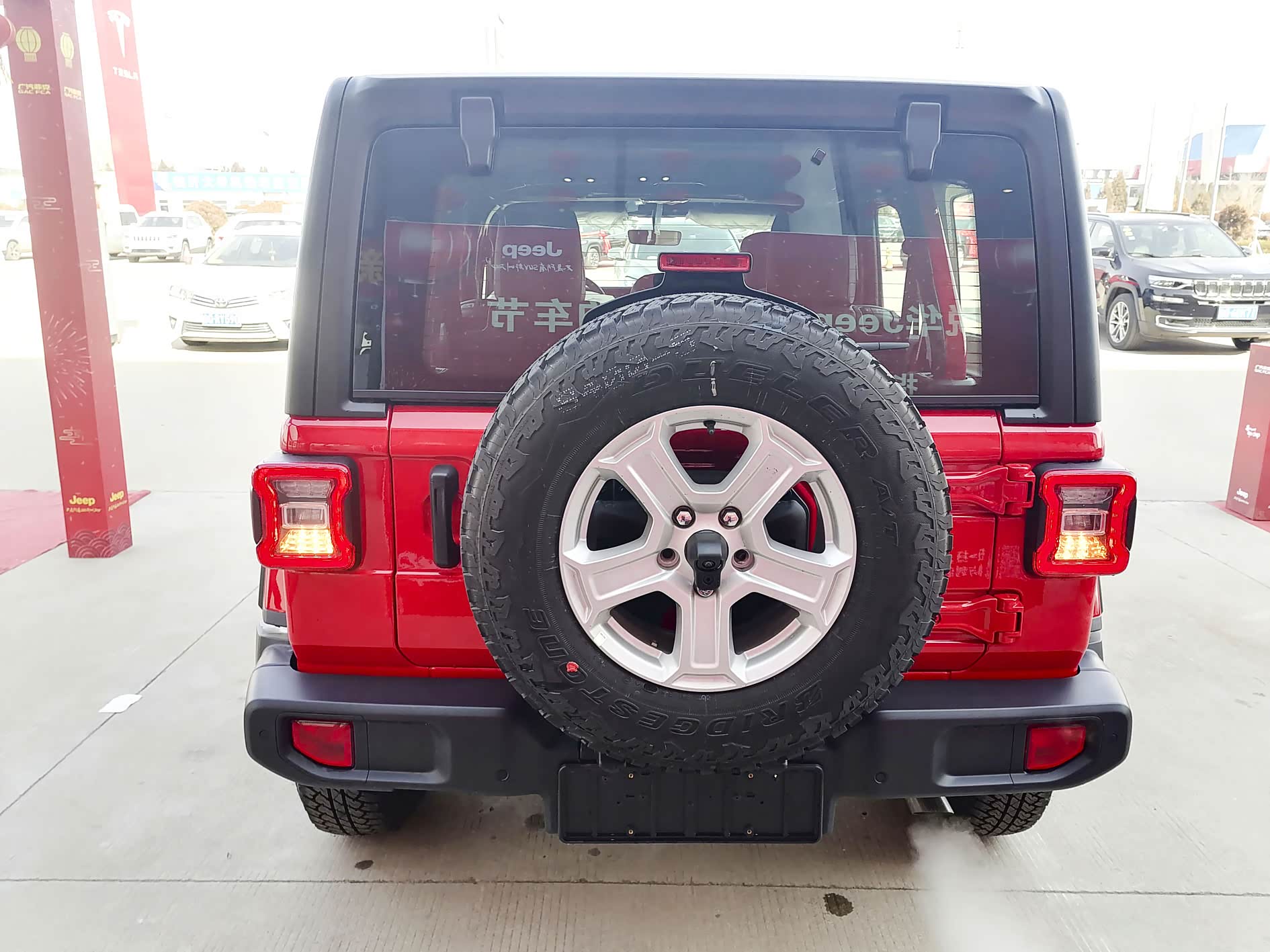 备胎悬挂于车的后方,之前很多的车都把备胎放在车位悬挂,不过现在很多车都不这么做了,只有牧马人的备胎还在这个位置,提车的时候店里会给一个黑色的罩子,可以把这个轮胎包起来。