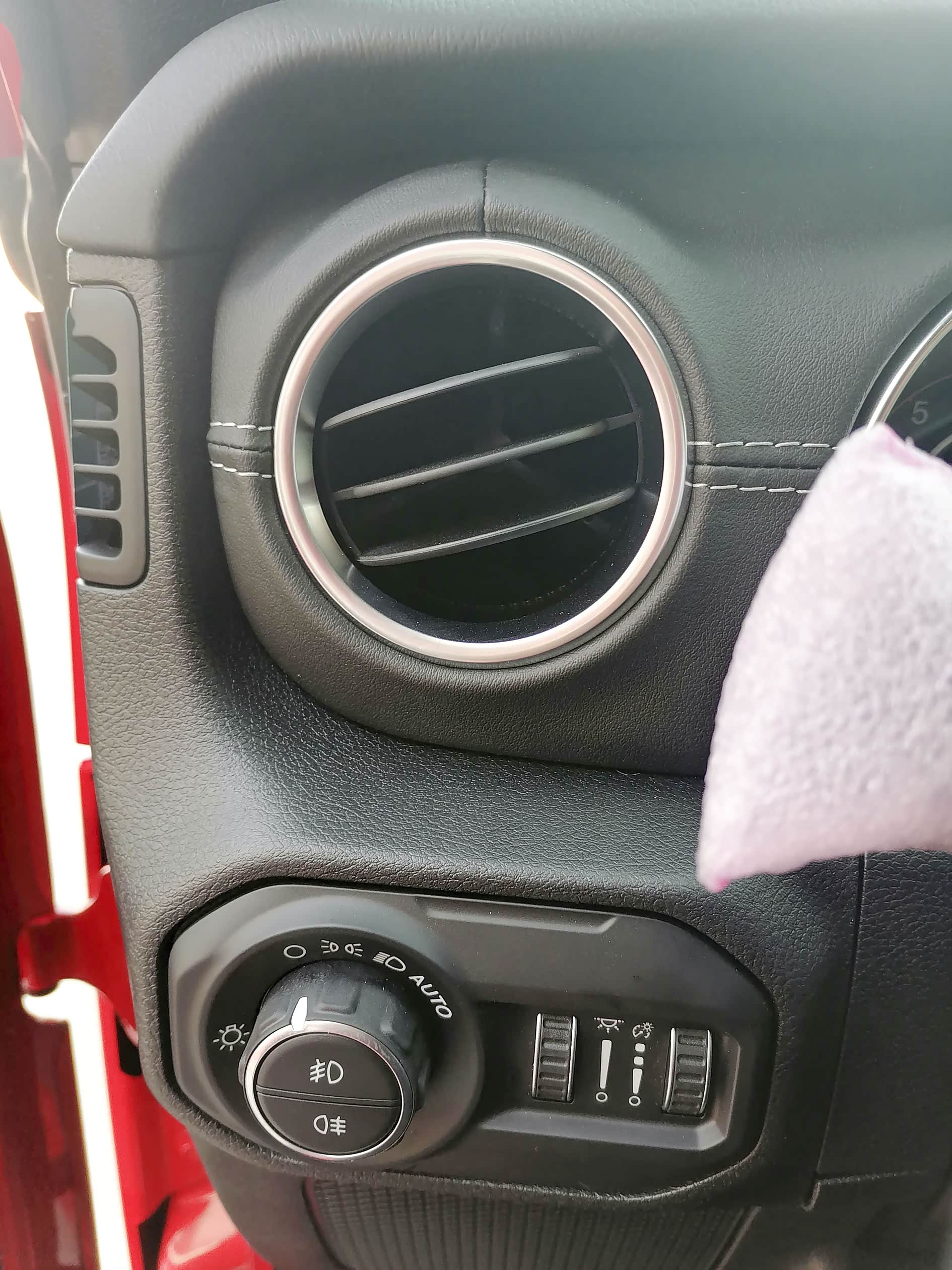 在变速箱的换挡杆左侧多了一个四驱的换挡杆,牧马人的四驱系统采用的是最新的4H auto系统,这套系统,可以在后驱和四驱之间切换,兼顾了两驱的油耗和四驱的驱动力。据说2.0T发动机的牧马人在国外要比3.0L的要贵。