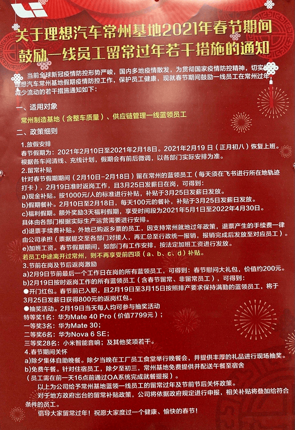 5、倡导就地过年 理想汽车春节放假待岗补贴曝光
