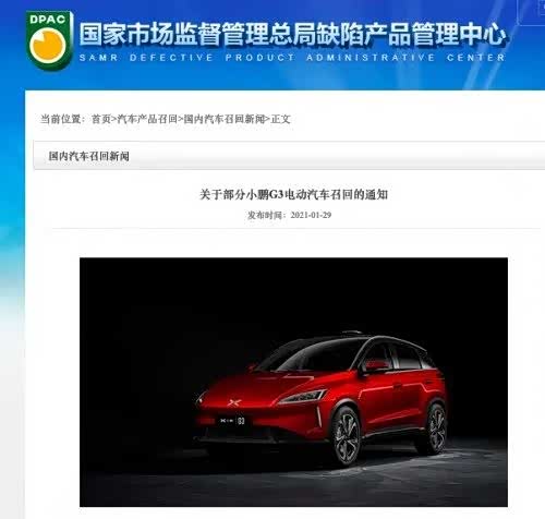 国家市场监督管理总局 日前,广州小鹏汽车科技有限公司根据《缺陷汽车产品召回管理条例》和《缺陷汽车产品召回管理条例实施办法》的要求,受委托向国家市场监督管理总局备案了召回计划,决定自2021年1月30日起,召回2019年3月29日至2020年9月27日生产的部分小鹏G3汽车,共计13399辆。本次召回范围内的车辆,逆变器直流母线电容上连接铜排螺丝的镀锡端子因锡须可能会造成高压直流电正负极间短路,导致逆变器无高压电供应。当这种情况发生时,如果车辆处于停车状态,可能无法再次启动;如果车辆处于行驶状态,可能导致车辆失去动力,存在安全隐患。广州小鹏汽车科技有限公司将为召回范围内的车辆免费更换改进后的逆变器,以消除安全隐患。