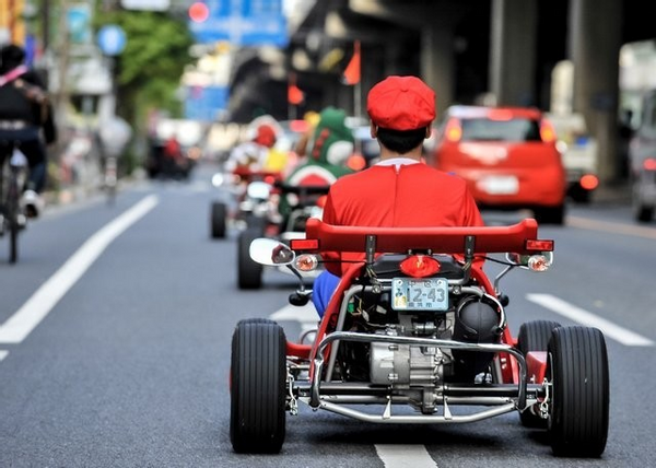在大年初一上映的影片《唐人街探案3》中,有一段戏是王宝强和刘昊然等人在东京街头驾驶卡丁车逃避托尼贾的追赶。实际上这并非是电影中设置的荒诞桥段,想必有不少去过东京的人也确实见到在这样的场景,那些驾驶卡丁车的人们通常还会Cosplay着游戏《马里奥赛车》中的各种角色。因为卡丁车确实是可以在东京街头合法上路,只要你有日本驾照或者国际驾照,都可以租借卡丁车在社会道路上驾驶,价格大概在8000日元/小时(约合480元人民币),根据时间、地区或租赁公司的不同价格会有所出入。