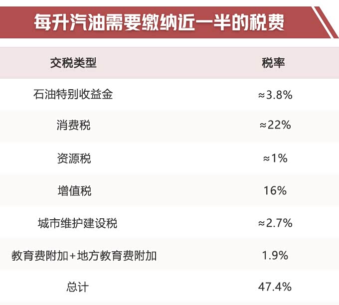 我国的油价为什么这么高,其中的税费占了很大的原因,汽油中包含石油特别收益金、消费税、资源税、增值税、城市维护建设费、教育费,六种税费相加合计占到了47.4%,这其中还没算两桶油的利润,因此国内的汽油价格相比全球有些国家才会显得这么高,税额中就包含有原来的“养路费”。