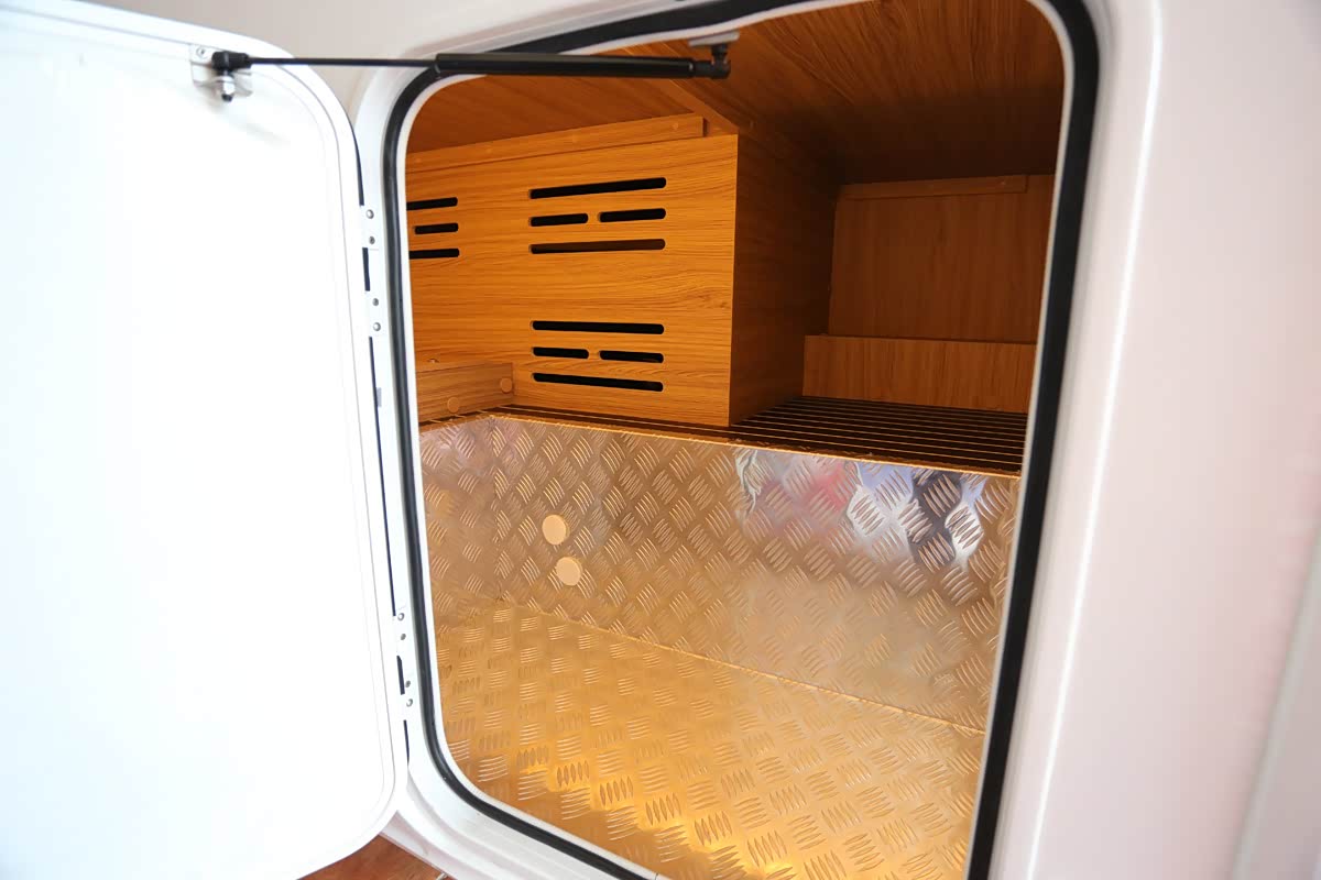 这款房车的车外储物空间较为充足,除了车尾的行李舱,还有2个工具舱收纳随车工具。