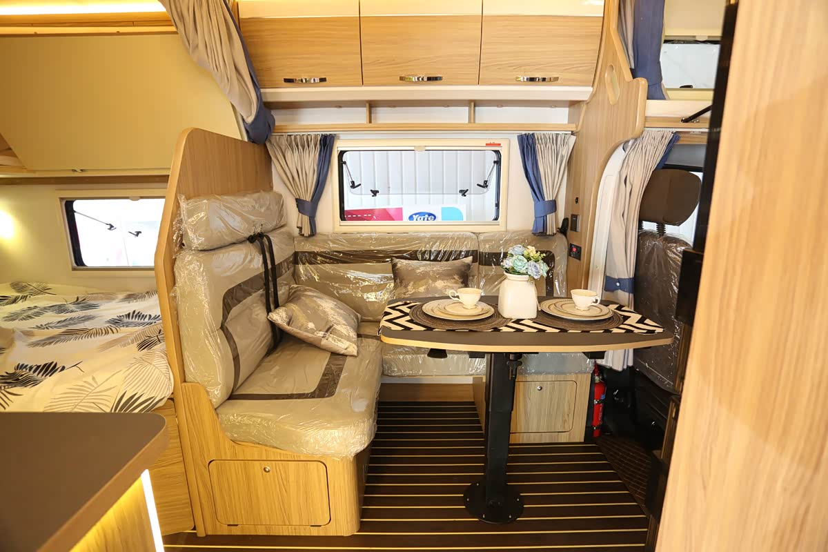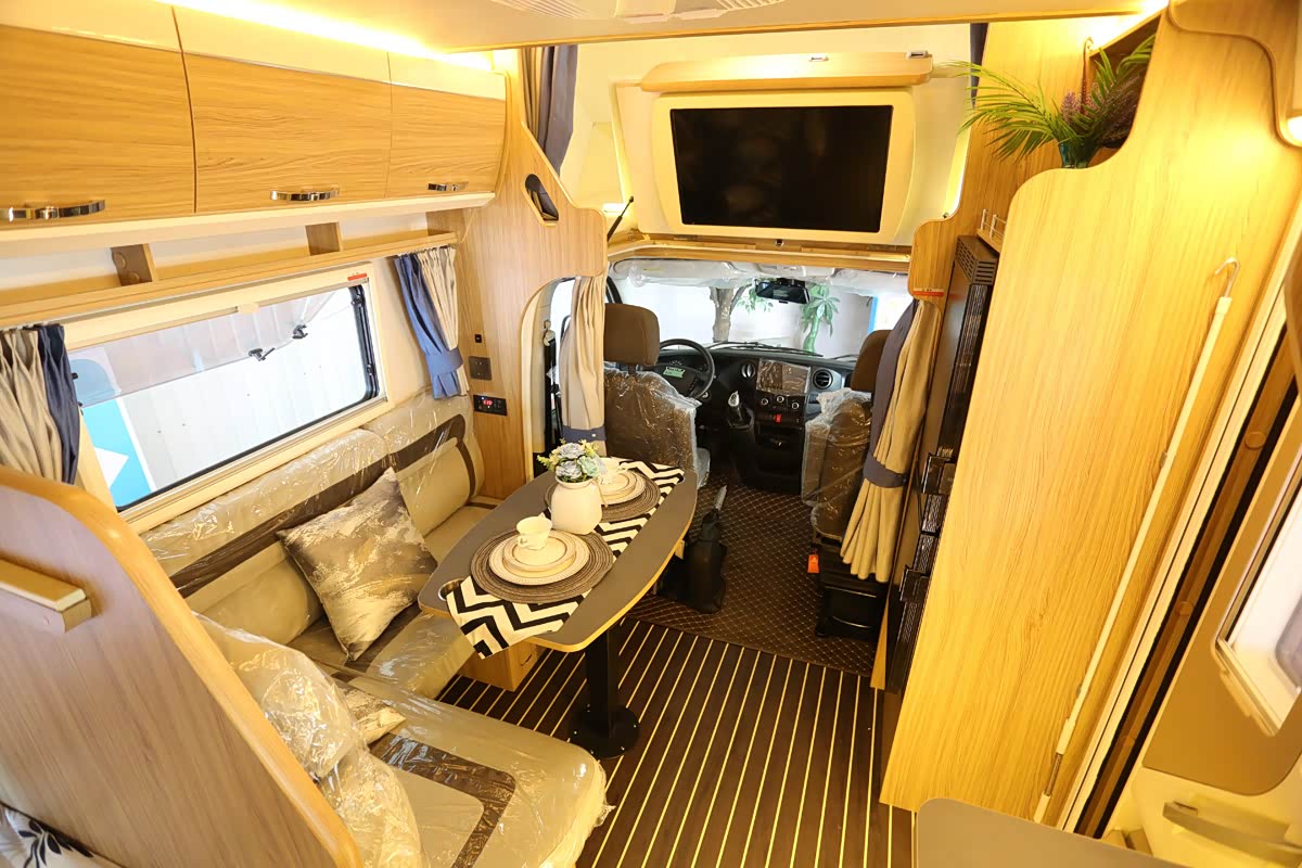 这款房车的整车尺寸5.9×2.5×3.2(米),也是满足C本准驾和上蓝色牌照的法规标准,对用户来说无需增驾即可驾驶。驱动形式上该车为后轮驱动,两个后轮均为双胎提升行驶稳定性,安全配置有着ESP电子车身稳定系统。