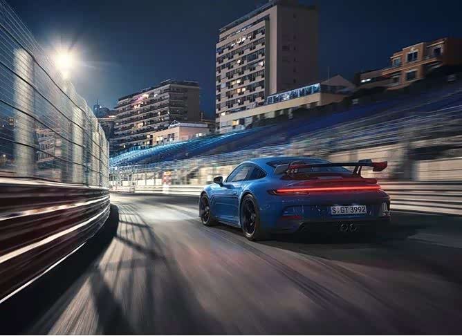 在动力部分,新车继续配备4.0L水平对置六缸发动机,最大功率为509马力,峰值扭矩为469Nm。新车标准配置为7速PDK双离合器变速箱,而6速手动变速箱为选装件。官方宣布的新款保时捷911 GT3的0-100km / h加速时间为3.2s,最高时速为317km / h,并在6分钟59.927秒内完成了纽伯格林北环赛道。相反,上一代GT3花费了7分钟12.7秒,而上一代GT3 RS花费了6分钟56.4秒。