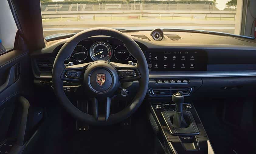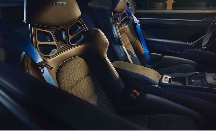 内饰方面,新款保时捷911 GT3延续了家族风格的内饰设计,同时还升级了内饰细节,包括从方向盘4点钟位置取下的驾驶模式按钮以及采用改进型设计的PDK换挡手动变速杆和结合了机械指针转盘和LCD屏幕的组合仪表。此外,除了四向可调运动座椅Plus外,消费者还可以选择安装18向运动座椅Plus或碳纤维全斗式座椅。