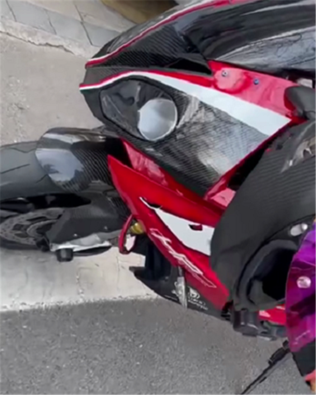最近,在国内就有一辆宝马S1000RR的“定风翼”被电瓶车撞毁,外壳破裂,对方赔了五千。
