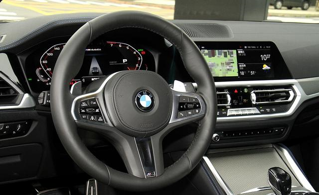 理论上,4系的后轮距比3系增加(尤其是M440i特别比M340i多了44mm),应该是车尾会较牢地黏在地上,可能是上次试的是M340ixDriveTouring旅行车型,相比之下,M440ixDriveCoupe在弯中的车尾反应反而是展现更好的利落感。至于对于路面缓震舒适度方面,虽然4系Coupe特别配有较大的阻尼、更高磅数的弹簧和加强型防侧倾杆,但路感反馈却跟M340ixDriveTouring不相上下,超乎原本的想象而有非常令人满意的舒适表现,以时速60到70公里通过市区烂路,都无须刻意减速而有优异的舒适感(两部都标准配置具有连续阻尼控制的M款跑车化电子悬挂)。